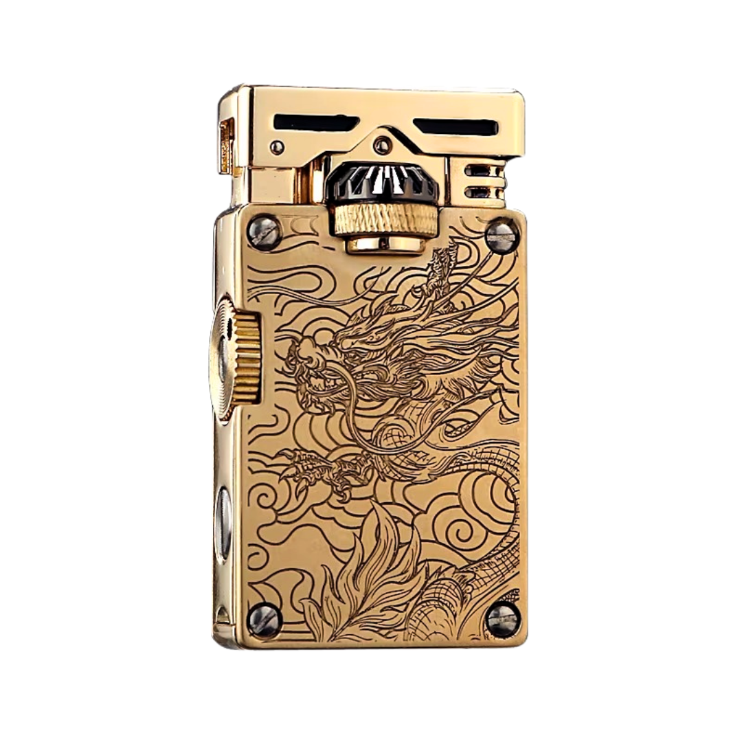 Dragon's Breath lighter boasts a luxurious gold finish, adorned with intricate engravings of a majestic dragon, symbolizing power and elegance. Featuring a precision flint wheel ignition and a steady flame, it combines exceptional craftsmanship with reliable performance. Perfect for collectors and those who appreciate cultural artistry.