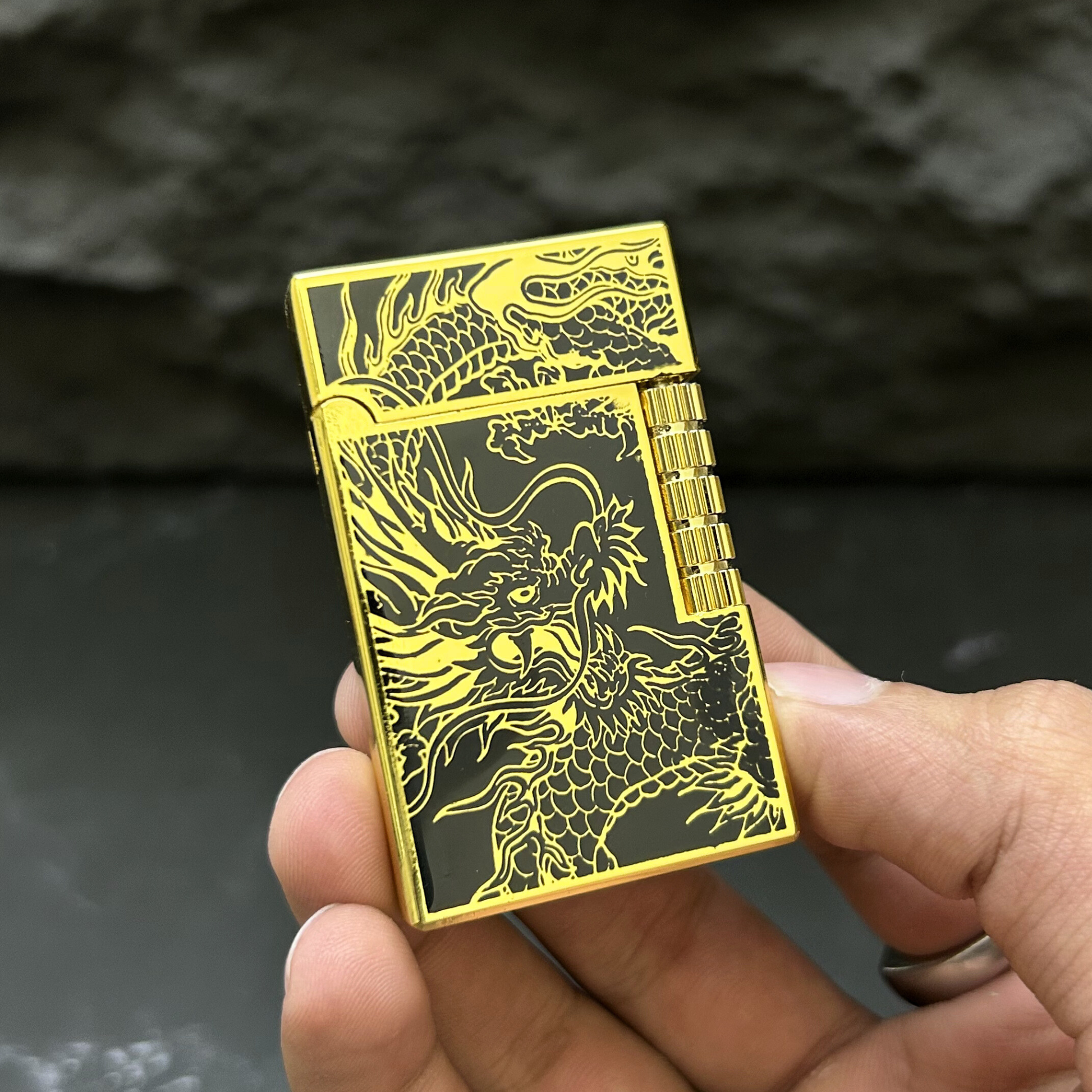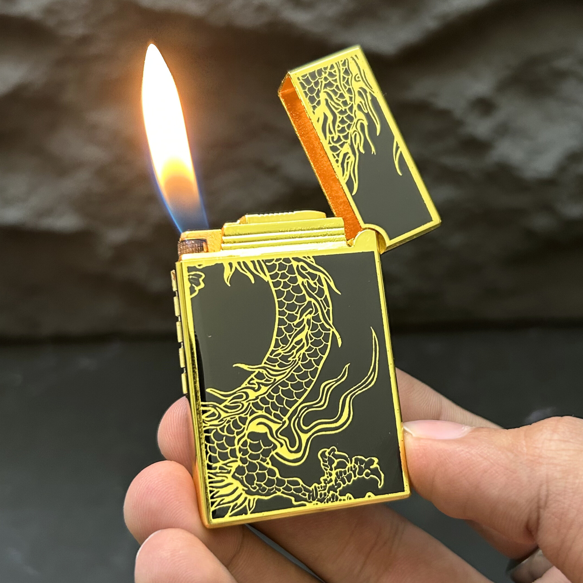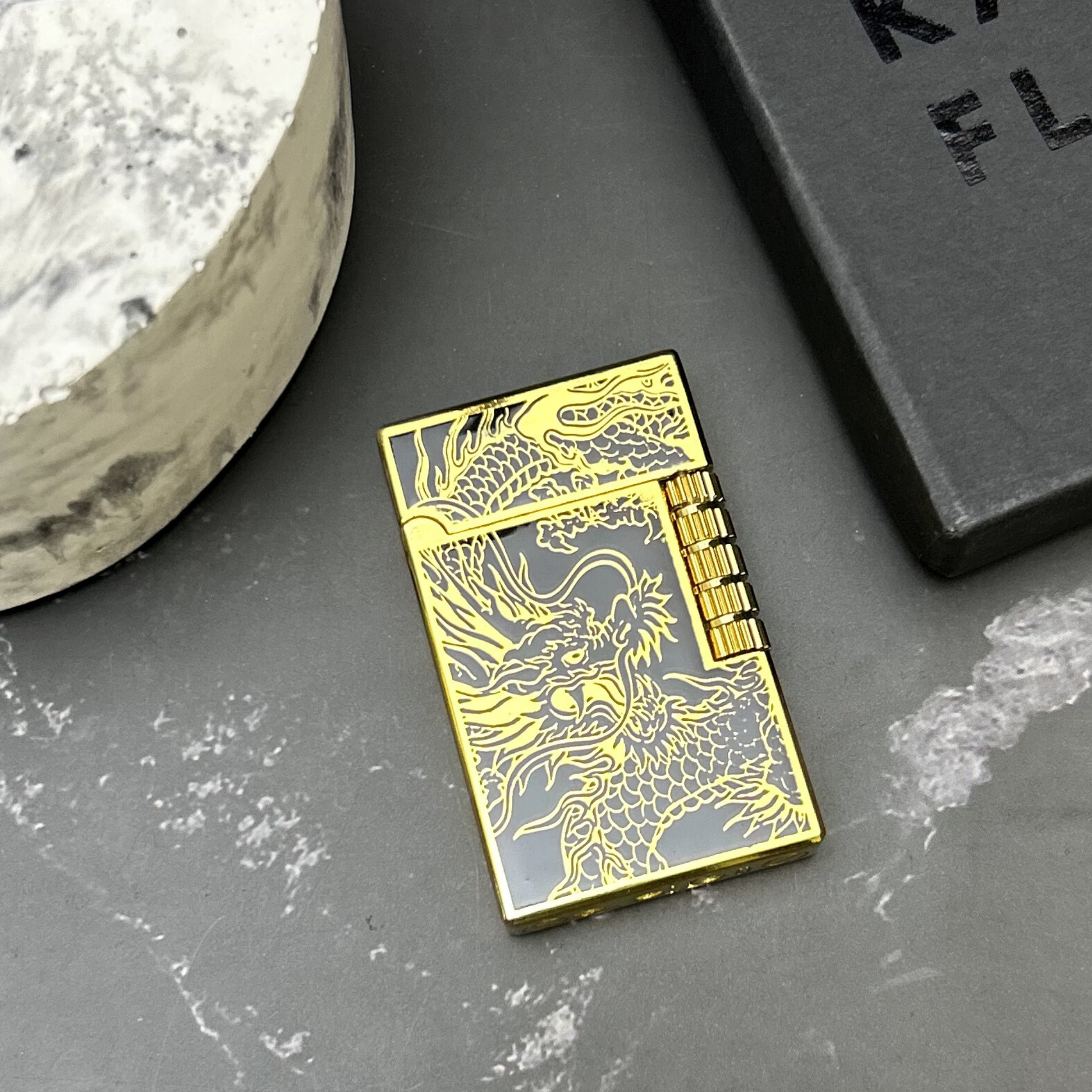 The Dynasty Flame lighter features a striking gold finish engraved with a powerful dragon design, symbolizing strength and legacy. Bold and refined, it brings timeless elegance to every spark.