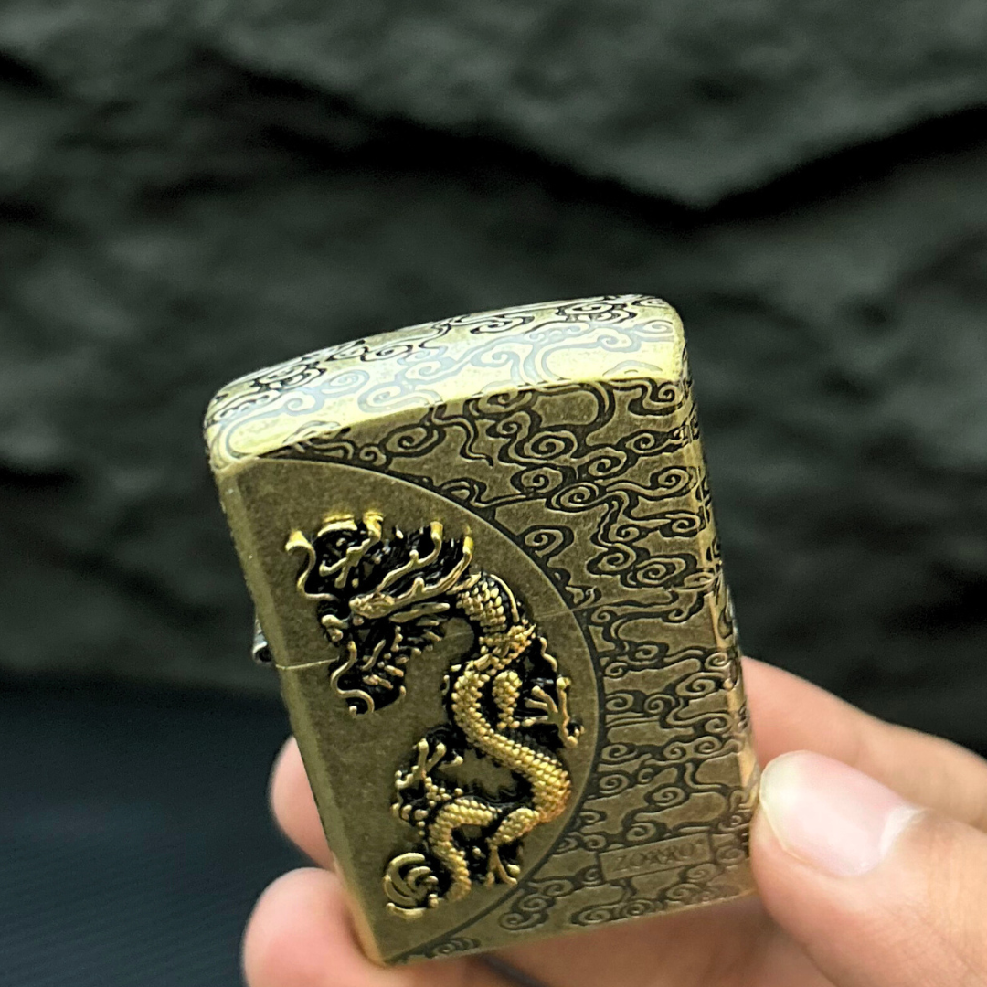 Unleash the spirit of strength and tradition with the Emperor’s Flame Lighter, a symbol of mastery and elegance. Crafted with precision, its embossed dragon design represents power and prosperity, while the intricate cloud patterns evoke timeless artistry. The solid metal body ensures durability, and its windproof flame delivers reliable performance in any condition.