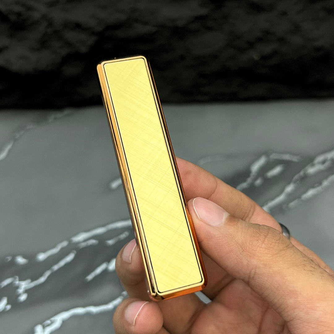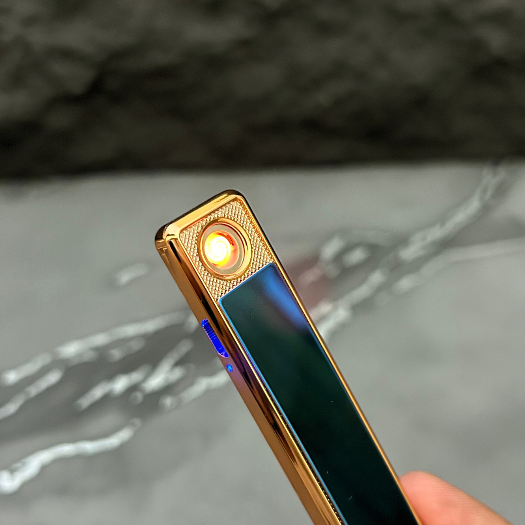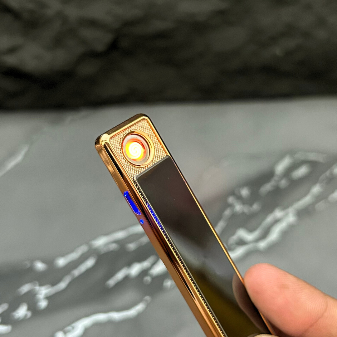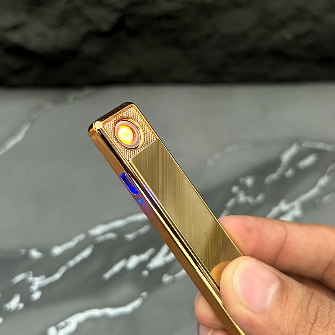 Sleek and stylish, this rechargeable electric lighter features a luxurious gold finish with a glossy panel. Its windproof coil ignition ensures reliable performance, while the slim, modern design makes it perfect for everyday use or as a premium gift. Eco-friendly and flameless, it offers both elegance and convenience in one compact accessory.