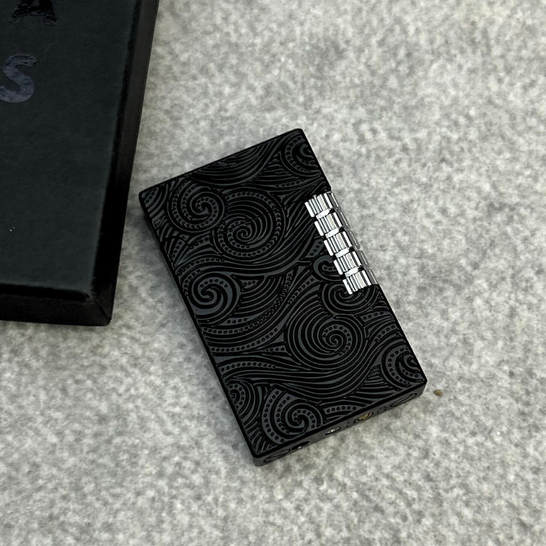 The Spiral Flint Lighter is a beautifully crafted piece with a sleek metal finish, featuring intricate spiral engravings that create a mesmerizing wave-like pattern. Designed with a reliable flint wheel ignition, it delivers a steady and robust flame, making it both a practical tool and a stylish accessory. Perfect for those who value unique design and dependable performance.